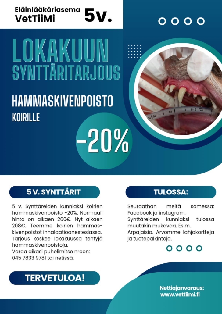 Lokakuun ajan tarjoamme hammaskiven poiston koirille -20%